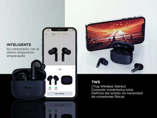 Los QCY T19 están diseñados para quienes buscan practicidad y calidad en un formato compacto. Con tecnología True Wireless Stereo (TWS) y Bluetooth 5.1, ofrecen una experiencia estable, sin cables y con un audio envolvente ideal para música, llamadas y uso diario.