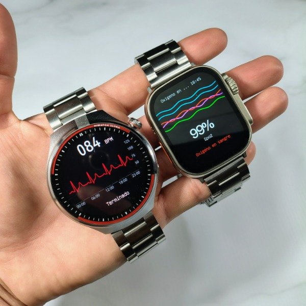 El smartwatch Ultra 3 y el Watch 4 Pro comparten funcionalidades, permitiendo acceder al calendario, calculadora, medir tu salud como el ritmo cardiaco, presión sanguínea, nivel de oxigeno en sangre y cuantas horas dormiste, ademas trae un panel general para acceder de formar rápida a las aplicaciones mas importantes.