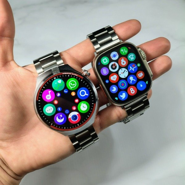 Con los dos smartwatch tendrás cronometro, micrófonos y parlantes para realizar y recibir llamadas, modos deportivos, marcos metalicos y funciones para personalizar el reloj a tu gustos.